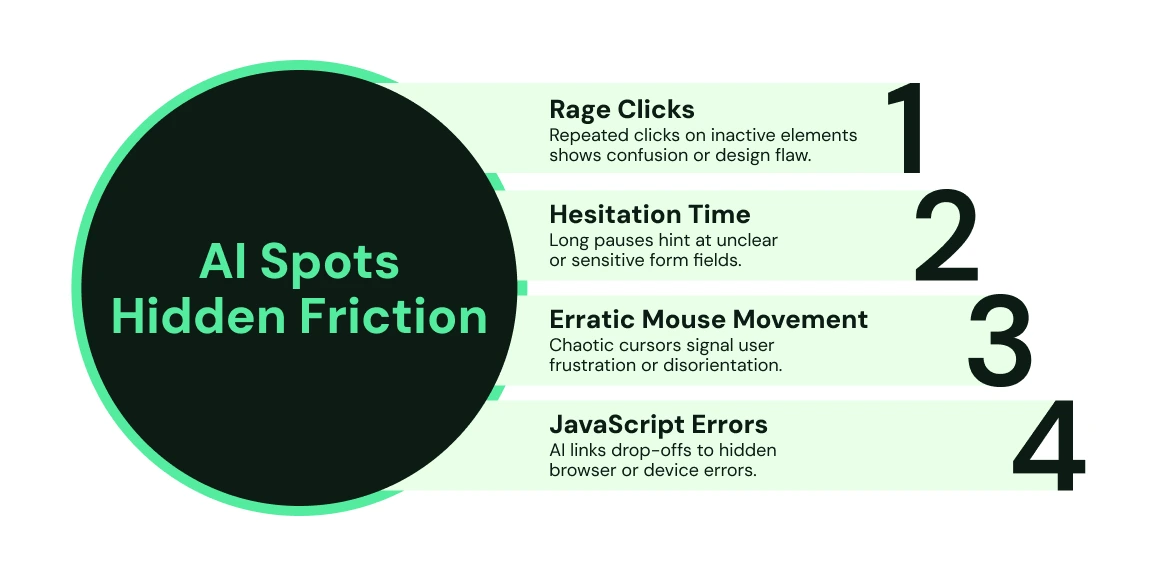 AI automates this process of friction detection. It can analyze every single user session to identify patterns of behavior that indicate frustration or confusion.
