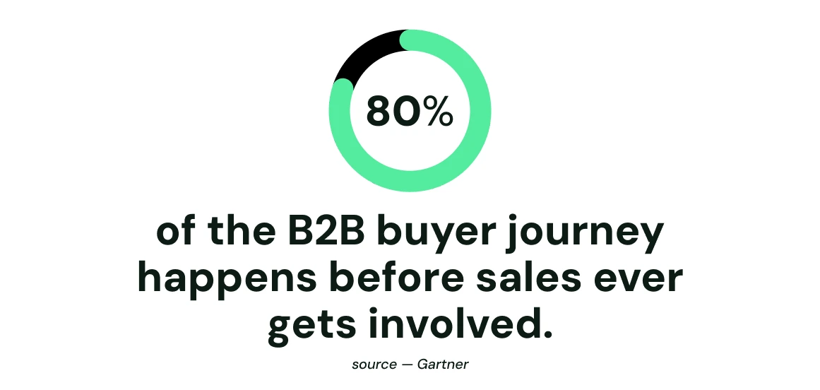Compounding this, Gartner[2] reports that B2B buyers now complete approximately 80% of their journey independently before ever contacting a sales representative.